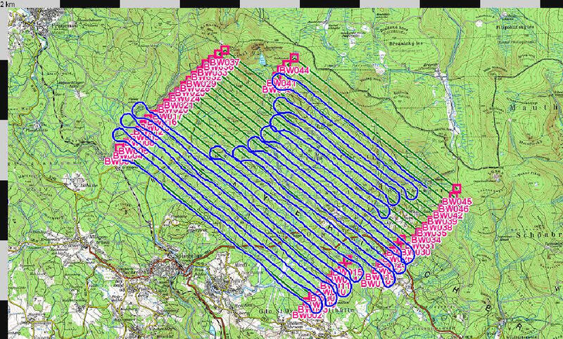 Mit Hilfe der Transektlängen und der Bildfeldbreiten können die bei einer Befliegung detektierten Tiere auf eine Fläche bezogen werden. In Kombination mit der Entdeckungswahrscheinlichkeit soll dann der tatsächliche Bestand bestimmt werden.