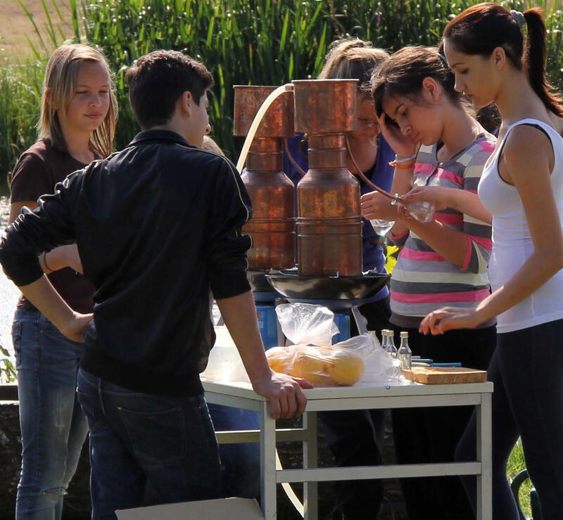 Der zum Experimentierraum umgebaute Schuppen wird durch ein eigenes Windrad und Solarmodule mit Energie versorgt. Er bietet umfangreiche Materialien, von einfachen Grabgeräten bis hin zu Koffern zur Bodenanalytik, mobilen Photometer und Destillen zur Extraktion von Duftstoffen.
