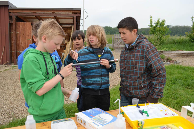 Im Thema Umweltanalytik geht es dann um einen Vergleich der konventionellen Landwirtschaft mit dem Ökolandbau. Die Bewertungskompetenzen der Schülerinnen und Schüler werden gefördert, indem sie sich mit beiden Bewirtschaftungsweisen inhaltlich auseinandersetzen und untereinander über die jeweiligen Vor- und Nachteile diskutieren. Im experimentellen Teil analysieren sie Böden und Gewässer im Hinblick auf die Versorgung mit bzw. Belastung von Stickstoff, Phosphor und Kalium und messen den pH-Wert des Wassers. Die Schülerinnen und Schüler geben anschließend dem FLEX Empfehlungen für die Düngung auf den Anbauflächen.