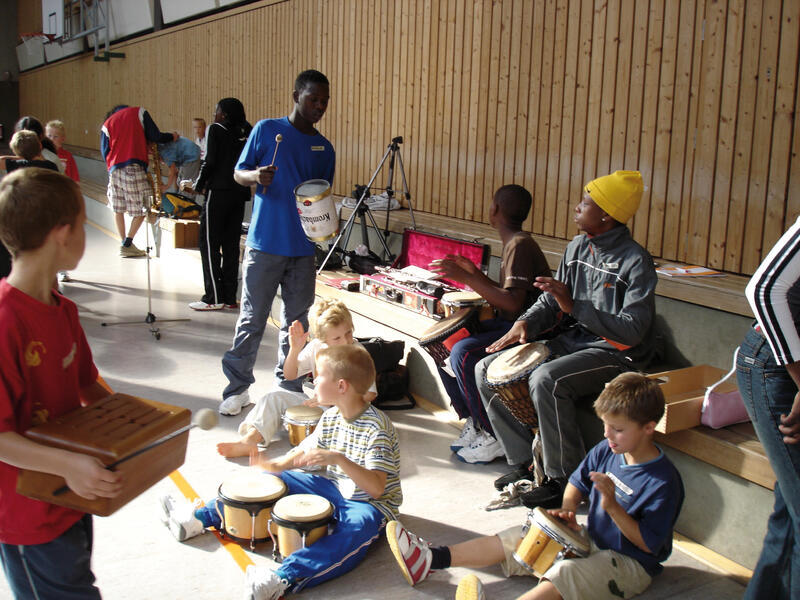 Schüler der Grundschule Diemarden musizieren gemeinsam mit den MUKA-Kids aus Johannesburg.