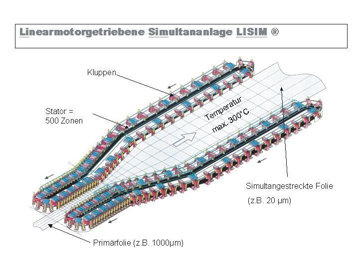 Das liear-motorbetriebe Folienreckverfahren LISIM kann Sensorlos geregelt werden - das vermindert die Stromverluste um mehr als 50%.