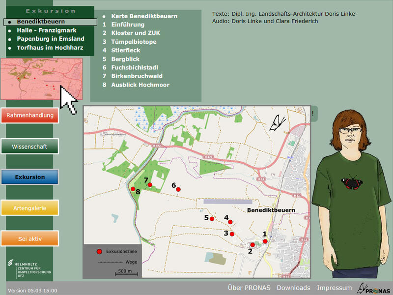 Die Lernsoftware PRONAS (PROjektionen der NAtur für Schulen) zeigt, wie Umweltforscher an solche Fragen herangehen. Wissenschaftler haben gemeinsam mit Hochschuldidaktikern, Lehrkräften und Umweltpädagogen der Historisch-ökologischen Bildungsstätte Papenburg, dem Zentrum für Umwelt und Kultur in Benediktbeuern, dem Nationalparkhaus Torfhaus im Harz und dem Georg-Cantor-Gymnasium in Halle Lernmaterialien für Schüler von 12 bis 19 Jahren entwickelt.