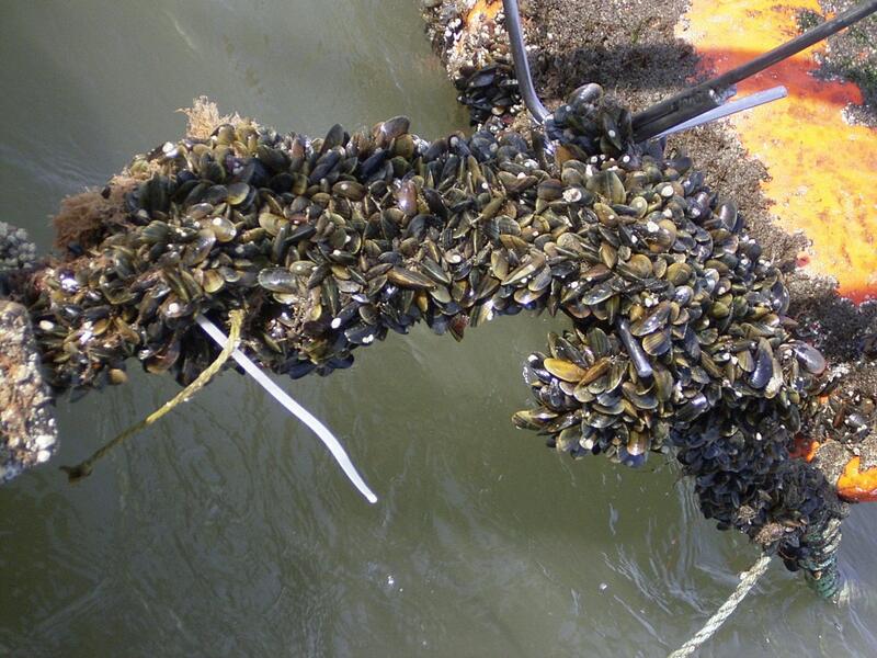 Ergebnis des Versuchs: Die Besiedelung auf den Kollektoren war sehr erfolgreich. Durchschnittlich konnten die Wissenschaftlerzwischen 5 und 13 kg Muscheln pro Meter Kollektortau ernten.