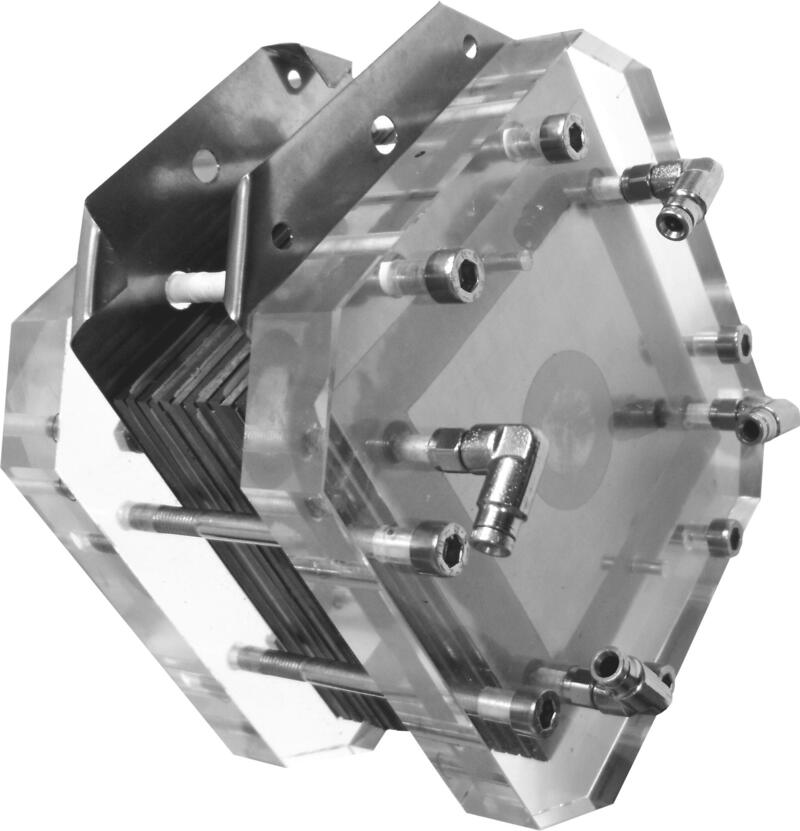 Ziel von umfangreichen Untersuchungen in einer engen Kooperation mit dem Direct Manufacturing Research Center (DMRC) an der Universität Paderborn war es, ein für den Werkzeugeinsatz geeignetes Kunststoff-Material zu identifizieren und möglichst optimale Maschinen- und Prozesseinstellungen für das neue Druckverfahren zu finden. Die mithilfe des 3-D-Drucks hergestellte Negativform wurde in einen von Firma Eisenhuth entwickelten Teststand integriert. So konnten wichtige Kennwerte, wie etwa die sogenannte Strom-Spannungs-Kennlinie gemessen werden. Im Ergebnis weisen die im 3-D-Druck hergestellten metallischen Bipolarplatten beachtenswerte Leistungskennwerte auf: Die Leistung liegt bezogen auf die Fläche bei einer Blechzelle bei circa 470 mA/cm² bei 0,6 V Betriebsspannung. Eine vergleichbare Zelle mit einer grafitischen Platte hat eine Leistung von 290 mA/cm².
