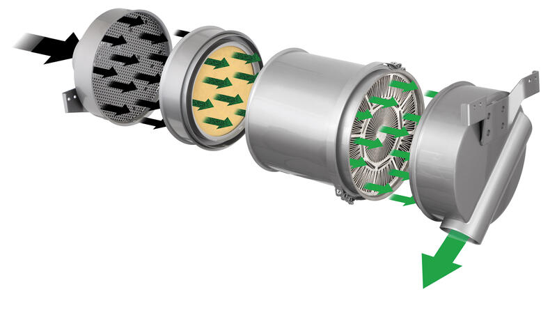 Der Einsatz eines Rußfiltersystems in Verbindung mit einem speziellen Katalysator-konzept reduziert die Emissionen von Dieselmotoren um mehr als 90 Prozent. Sintermetallfilter zeichnen sich durch ein geringes Gewicht, ein großes Speichervolumen für Asche und eine lange Haltbarkeit aus. Die typische Lebensdauer eines solchen Dieselrußfiltersystems liegt bei mehr als 500.000 gefahrenen Kilometern.