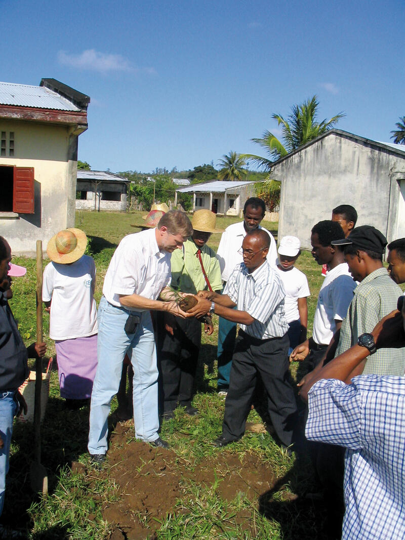 Wie in der Medizin gesunde Haut verpflanzt wird, so verpflanzen Schüler in Brickaville Pflanzen aus den Restbeständen des noch vorhandenen Primärwaldes in das daneben liegende Grasland.