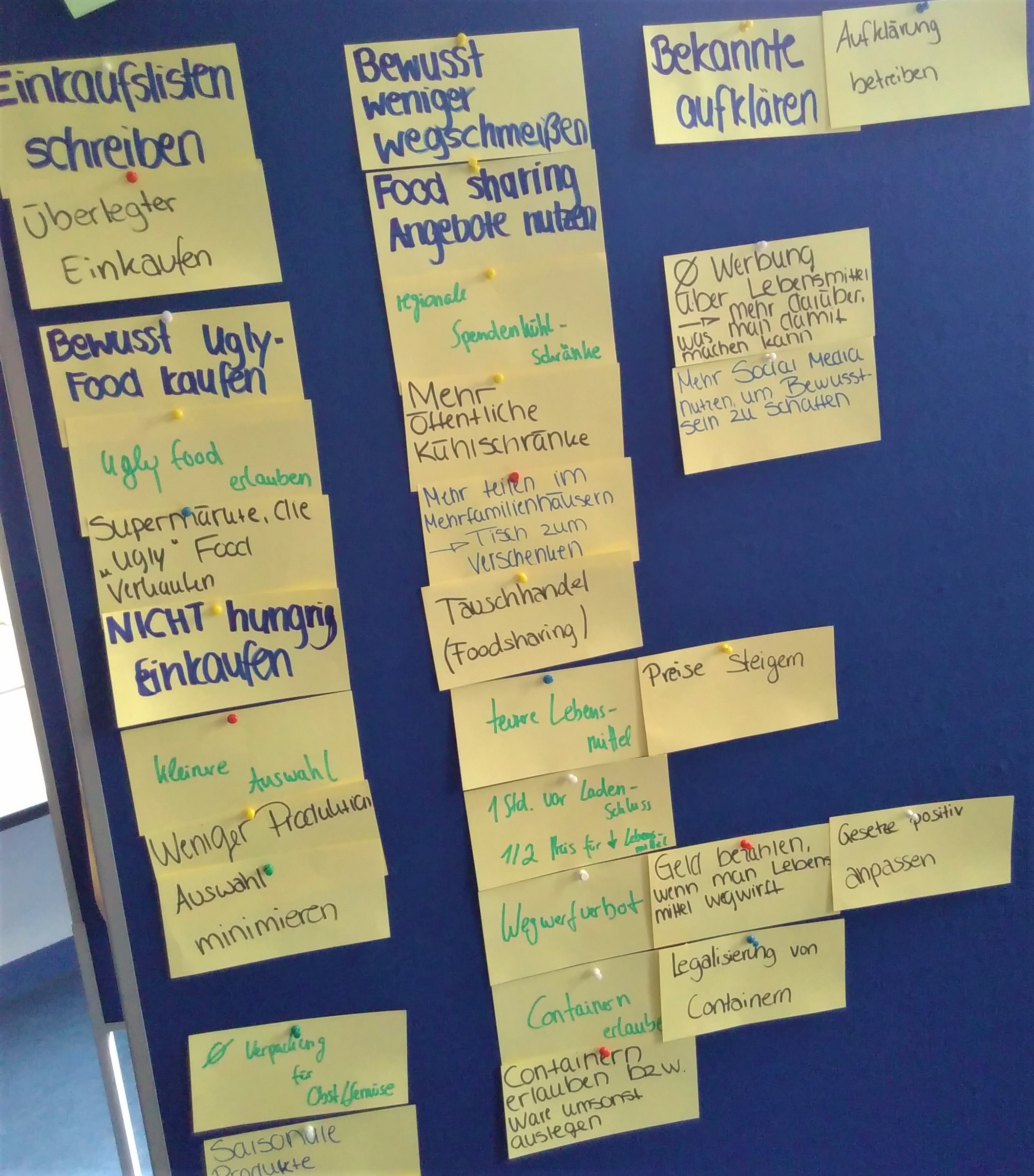 Politische Forderungen wurden u.a. aus den durchgeführten Bildungsveranstaltungen hergeleitet, in denen mit den Teilnehmer*innen Rahmenbedingungen für einen wirkungsvollen Einsatz gegen Lebensmittelverschwendung erörtert wurden. Für die Durchführung der Politikgespräche sowie für vorbereitende Tätigkeiten, Öffentlichkeitsarbeit und Dokumentation wurden umfangreiche Materialien erstellt.