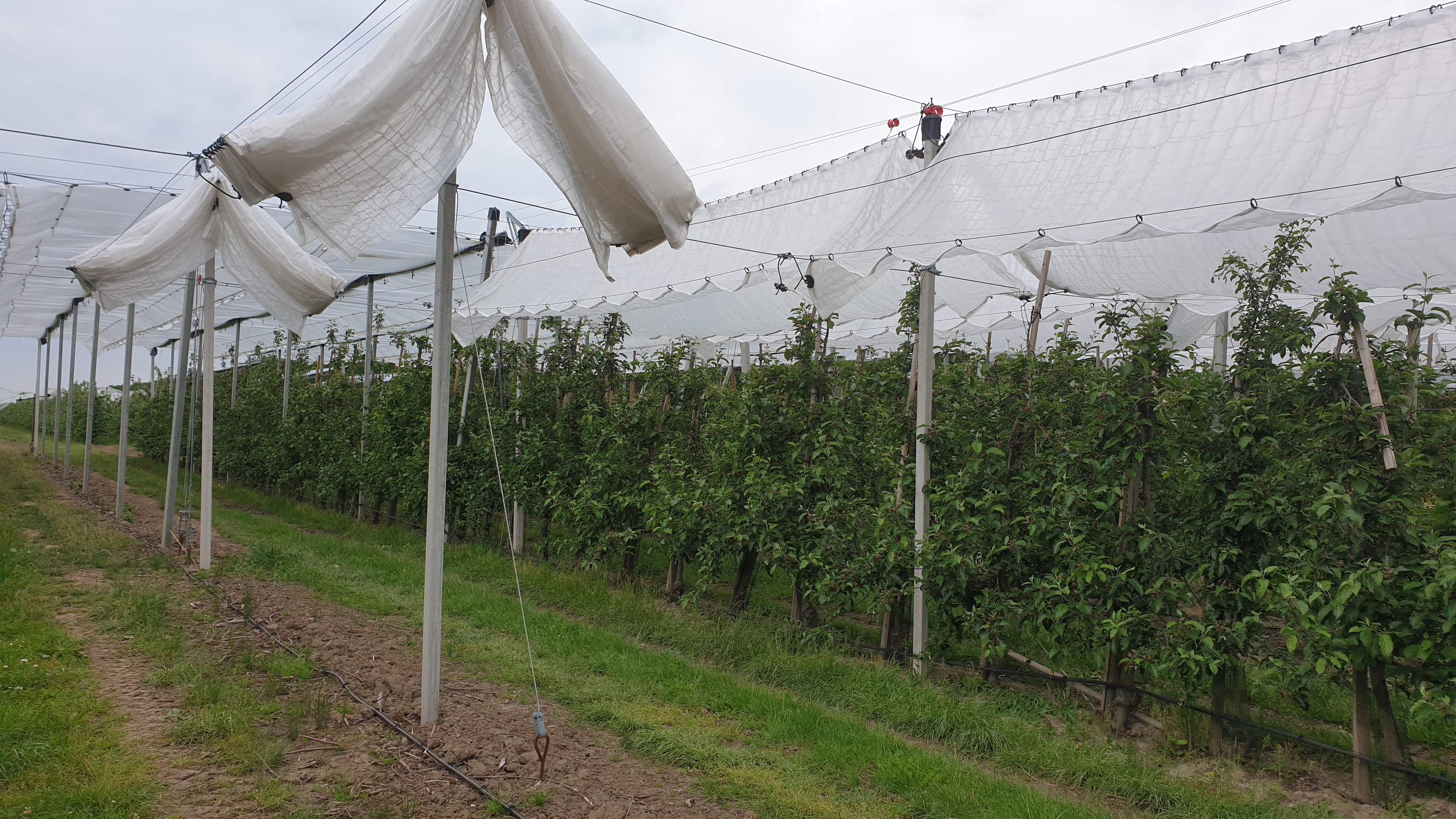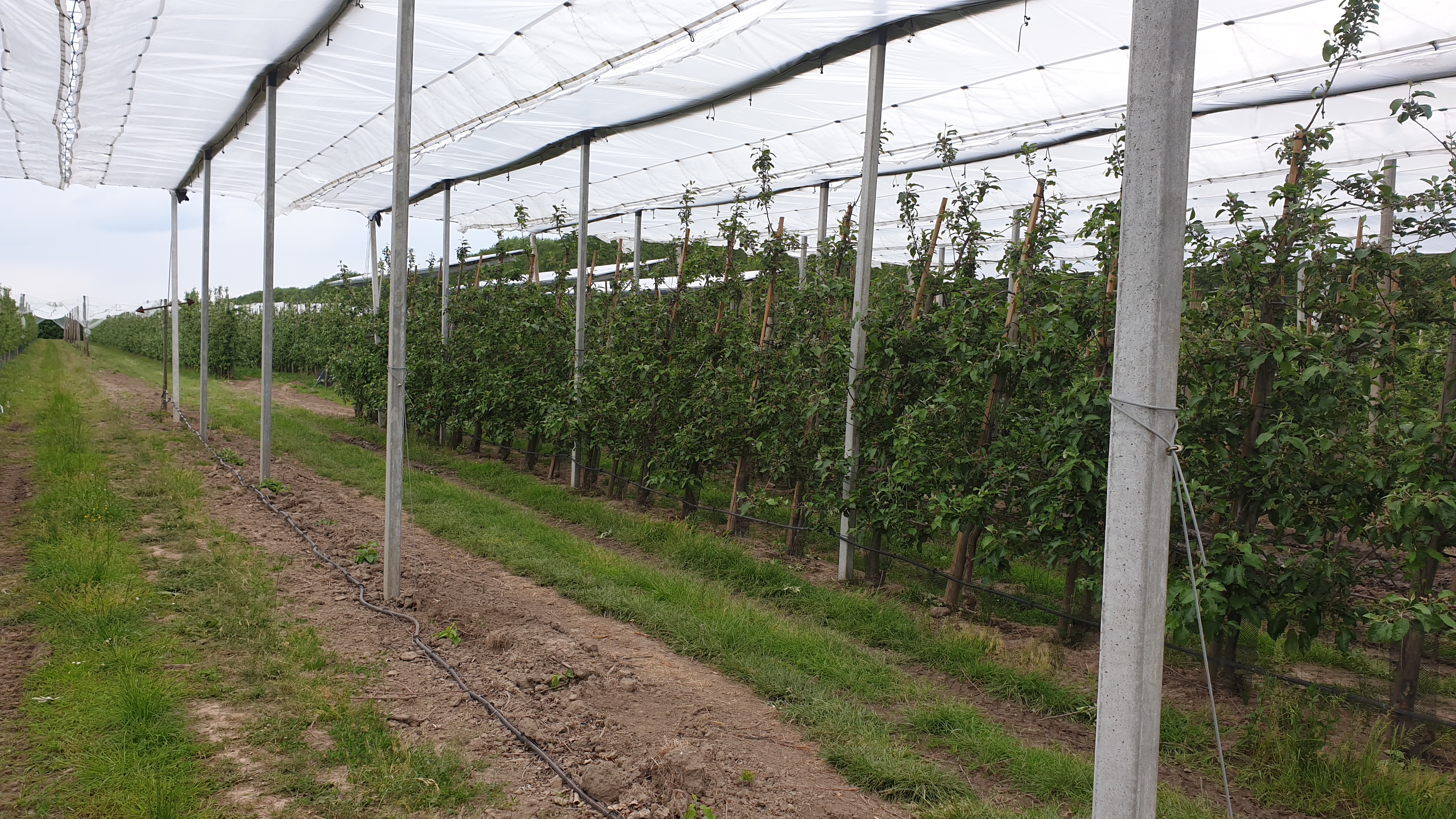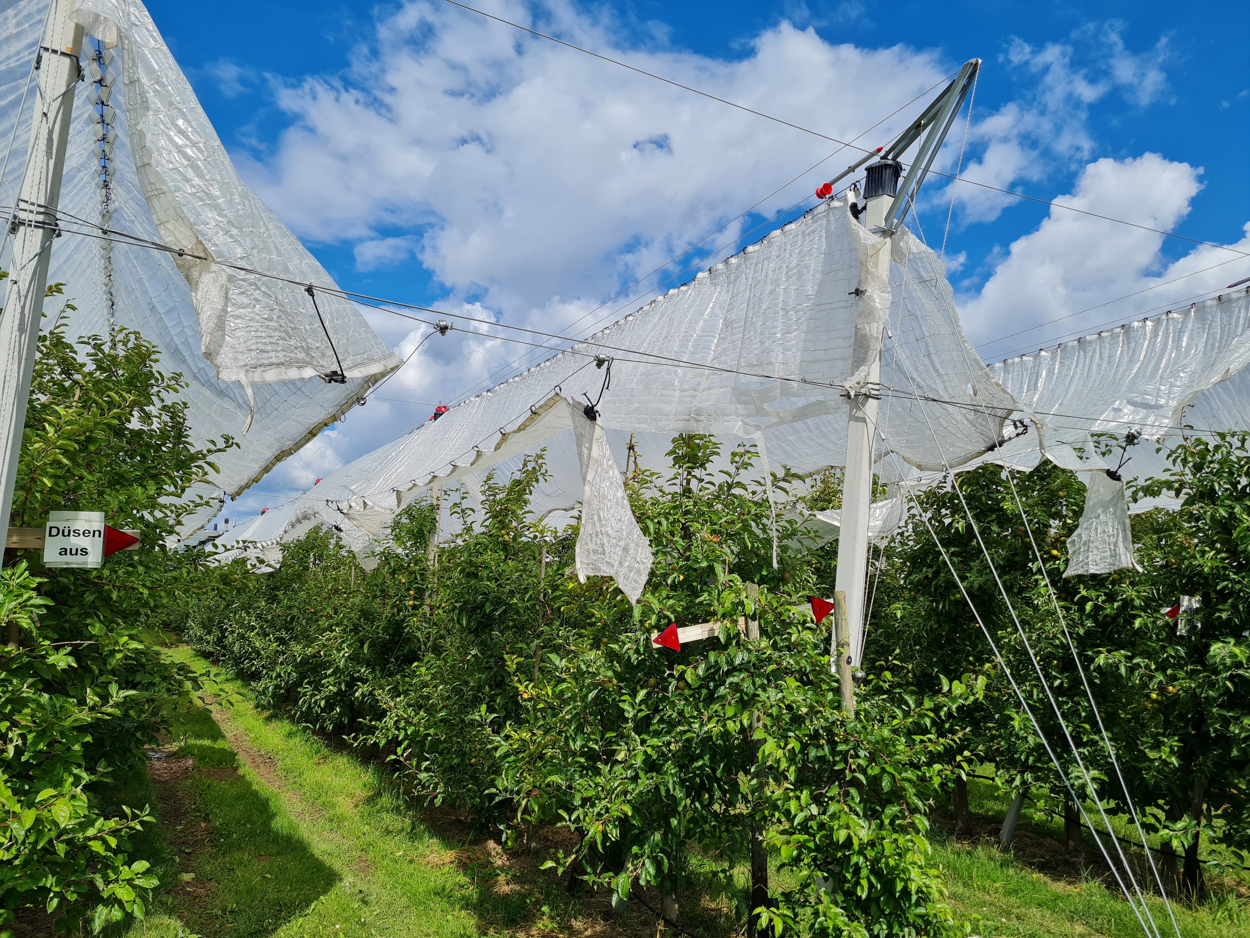 Die geplante variable Überdachung konnte 2020 auf Grund technischer Probleme nicht umgesetzt werden. Nach erneuter Ausschreibung im Winter 2020/21 erhielt Hermes Fruitsystems (Beek, Niederlande) den Zuschlag. Im Sommer 2021 wurde schließlich eine variable Überdachung vom Typ Wayki Anti-Rain (Firma Valente Srl, Italien) errichtet. Unter allen Foliendächern wurde eine Tropfbewässerung eingerichtet.