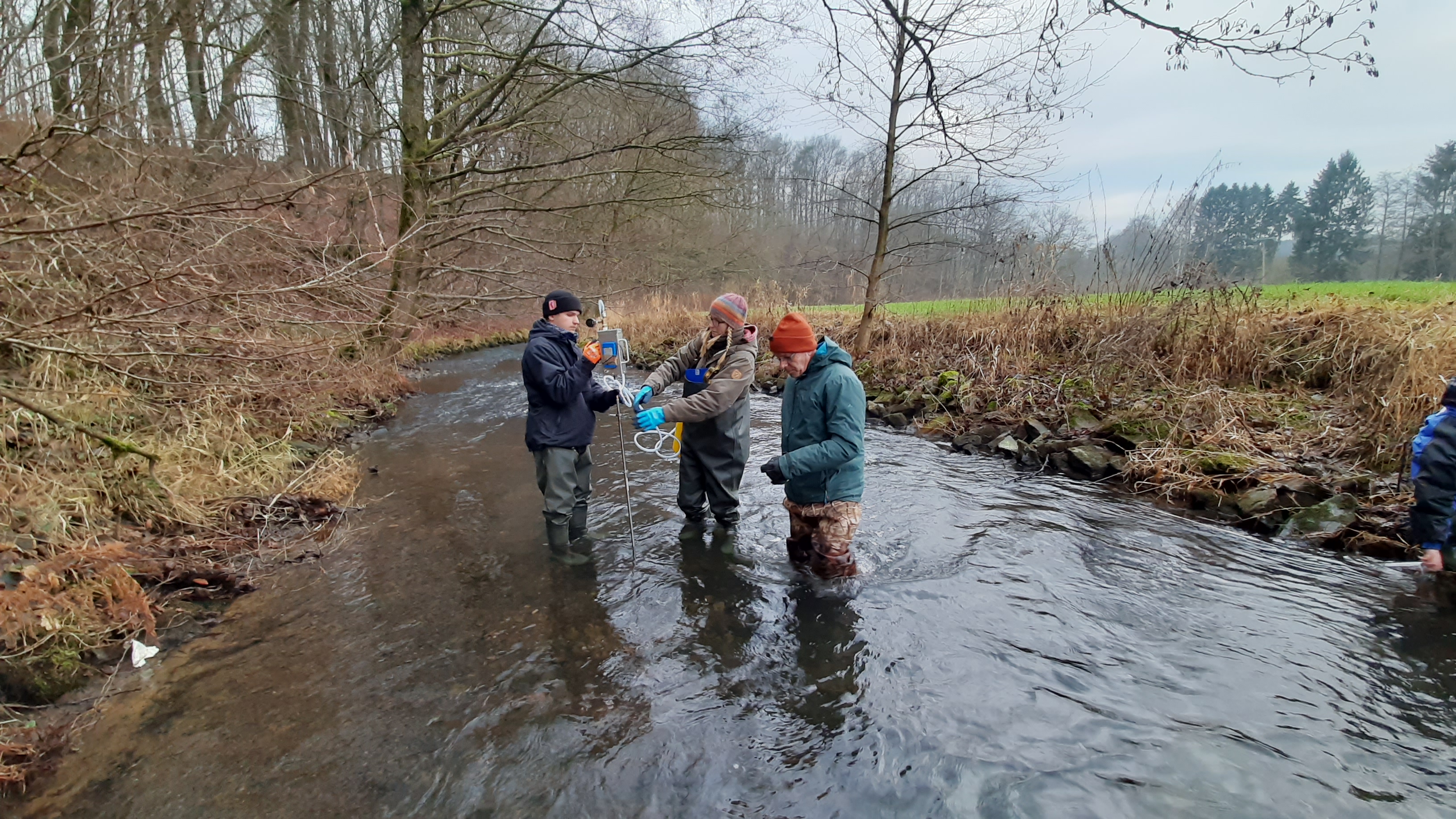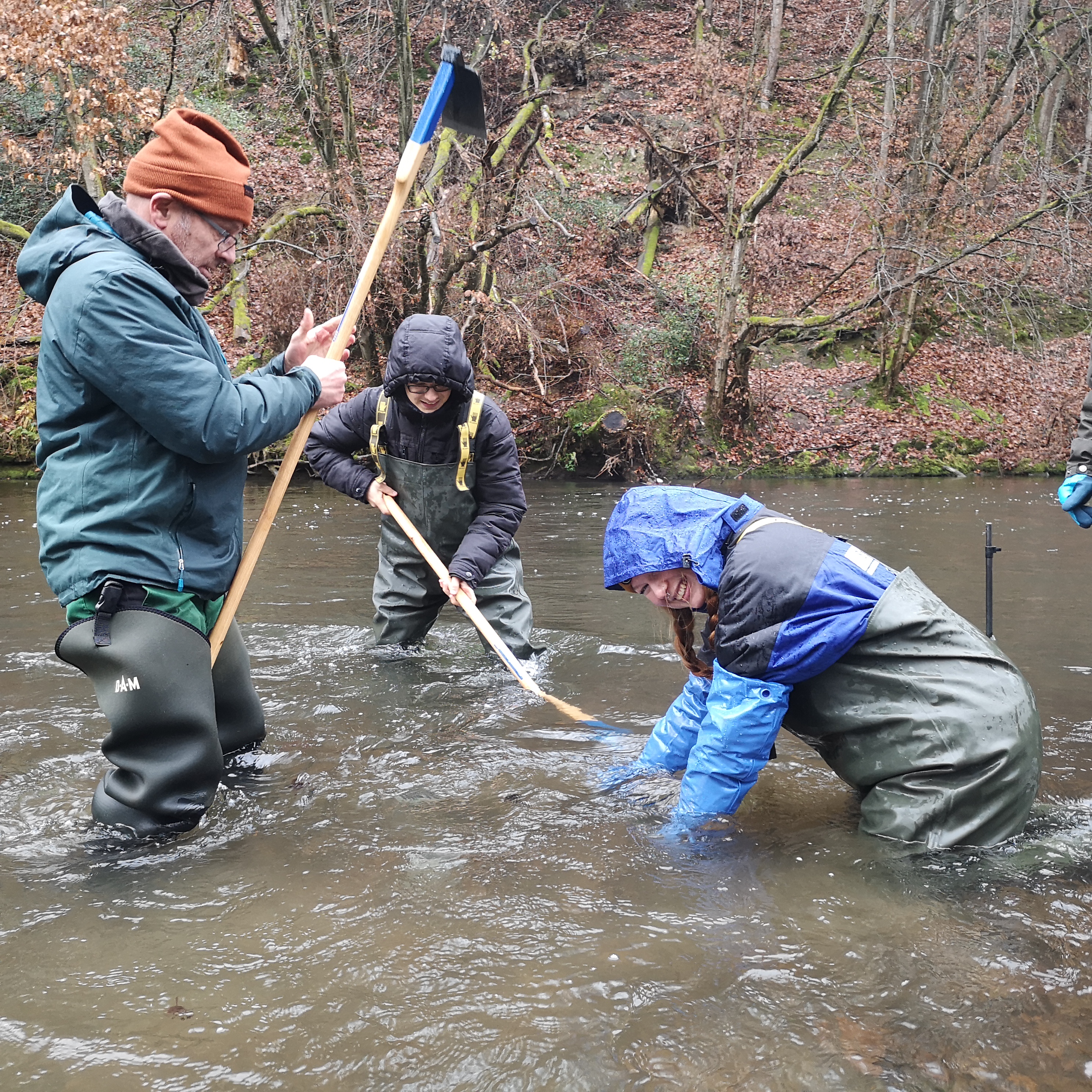Im Anschluss erfolgen detaillierte Kolmationsmessungen in verschiedenen Tiefen über die gesamte Entwicklungszeit des Lachslaichs und physikalisch-chemische Untersuchungen des Interstitialwassers und der fließenden Welle (Temperatur, Sauerstoffgehalt und -Sättigung, pH-Wert sowie elektrische Leitfähigkeit). Des Weiteren werden simulierte Laichgruben angelegt.