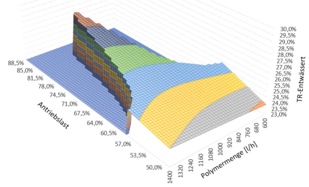 Ein konstanter TR-Wert lässt sich durch Regelung hin zu einen konstanten Sensorsignal einstellen. Um einen maximalen TR-Entwässert zu erreichen, wird die dazu benötigte Polymerdosis mithilfe des Sensorsignals fortlaufend nachgeregelt. Werden die Sensorsollwerte nicht erreicht, so wirkt sich dies unmittelbar auf die Zentrifugen-Betriebsparameter aus.