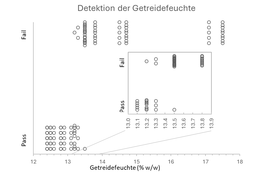 Feldversuche zeigen, dass bereits nach wenigen Tagen im hermetischen Sack eine Kornfeuchte von über 13,3 % verlässlich vom Sensor angezeigt wird. Damit sind Käufer sicher, dass keine Fermentation in hermetischen Säcken auftreten kann.