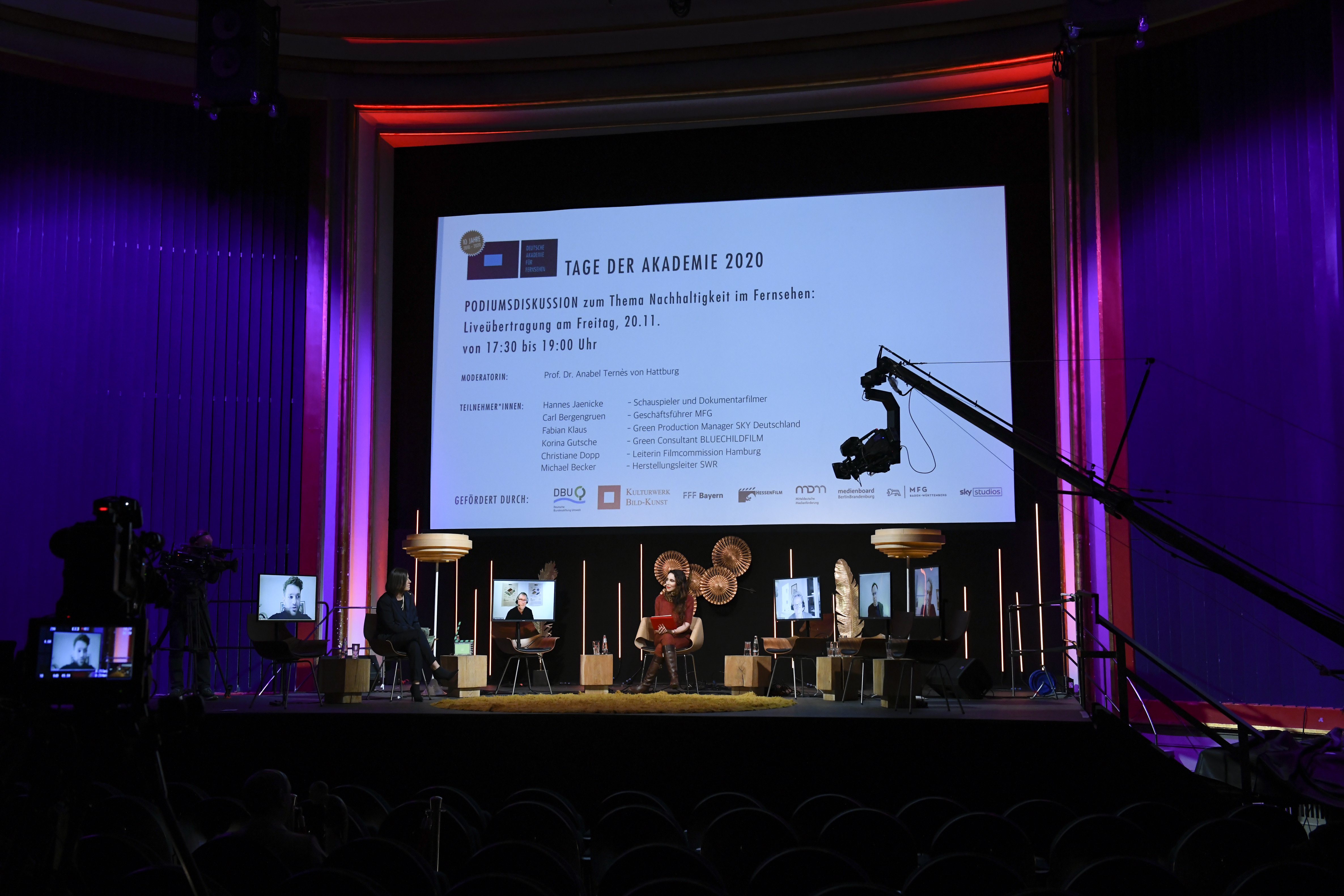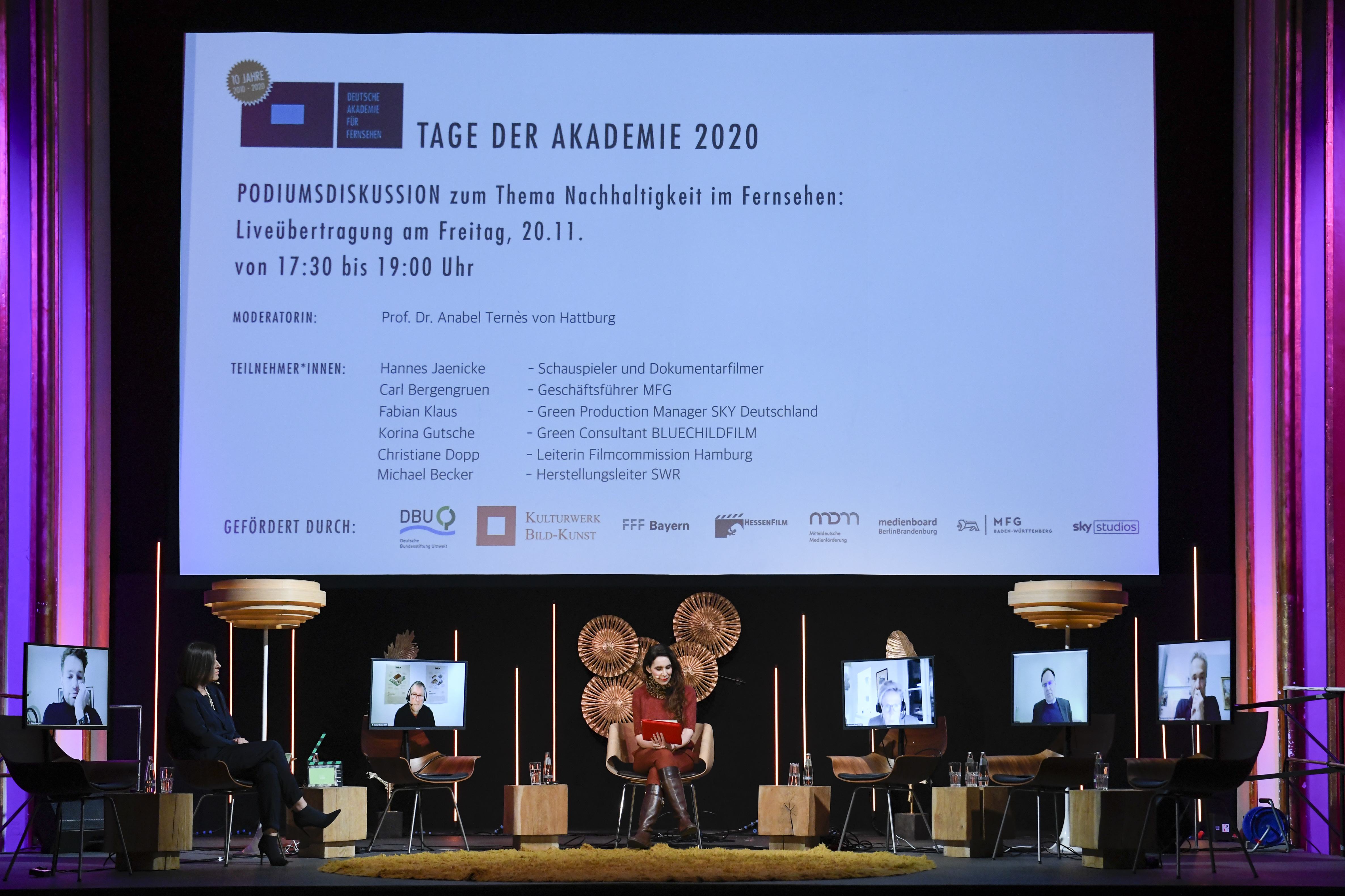 Im Jahr 2020 waren „Nachhaltigkeit“ und „grünes Drehen“ die Hauptthemen der Tage der Akademie. Ziel war es den Fernsehschaffenden einen Einblick in das „grüne Drehen“ zu geben, Aufzuzeigen welche Handlungsoptionen es gibt und einen Praxis-Austausch anzubieten und die Kollegen von den Vorzügen einer nachhaltigen Arbeitsweise zu überzeugen, aber auch die Herausforderungen darzustellen, die „grünes Drehen“ mit sich bringt.