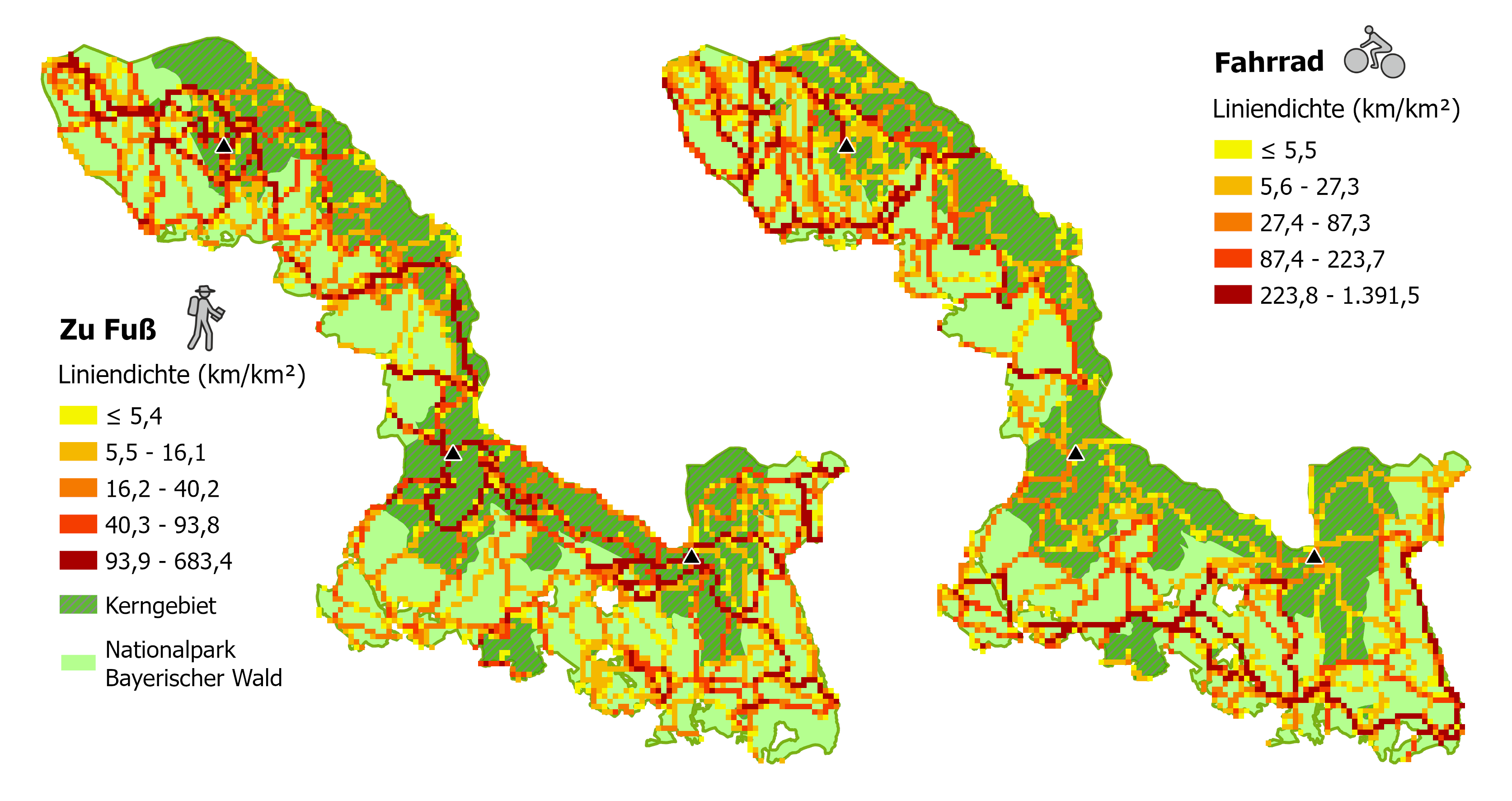 In den letzten Jahren wurden im Nationalpark Bayerischer Wald (NPBW) sowie in Nationalparks weltweit ein Anstieg der Besucherzahlen beobachtet. Zeitgleich kam es im Bereich des Outdoorsports zu einer immer weiter voranschreitenden Digitalisierung, wodurch digitale und soziale Medien auch für Nationalparkbesucher eine immer größere Rolle spielen. So werden beispielsweise Outdoor-Routenportale von Besuchern verwendet, um Informationen zu sammeln, Routen zu planen oder diese mit anderen Nutzern zu teilen. Dies birgt jedoch vor allem in Schutzgebieten Potential für Konflikte, da es dadurch zur unkontrollierten Verbreitung von teils unzulässigen Wander- und Radrouten kommt. Dies wiederum kann ein hohes Störungspotential auf Wildtiere mit sich ziehen, was sich negativ auf die Naturschutzziele auswirken kann. Die Nutzung digitaler Medien eröffnet jedoch auch Chancen für Schutzgebiete. So können beispielsweise Regeln und Vorschriften über Online-Plattformen breiten Bevölkerungsschichten nahegebracht und das Besucherverhalten durch die bereitgestellten Inhalte und Informationen beeinflusst werden. In immer mehr Schutzgebieten steigt aktuell das Bewusstsein für die aus der Nutzung digitaler Medien resultierenden Probleme sowie Chancen und es wird ein klarer Handlungsbedarf im Bereich des digitalen Besuchermanagements erkannt.