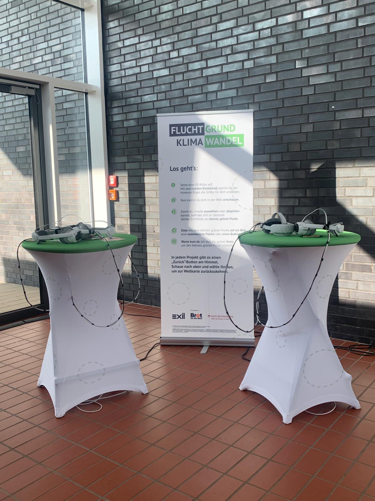 Für die Virtual Reality-Brillen wurde in Kooperation mit Brot für die Welt und Terre des Hommes filmisches Material aus Projekten in Indien, Indonesien, Äthiopien und Argentinien gewonnen. Diese zeigen konkrete Maßnahmen zur Klimaanpassung wie Aufforstung oder Wasserrückhalt und eröffnen Besucher*innen digitale Lernräume. Die Agentur, die mit der Produktion der Ausstellung betraut war, konnte diese trotz Projektleiterwechsel mit zeitlicher Verzögerung fertigstellen. Technische Schwierigkeiten, insbesondere mit den Virtual Reality-Geräten machten wiederholte Überarbeitungen notwendig.