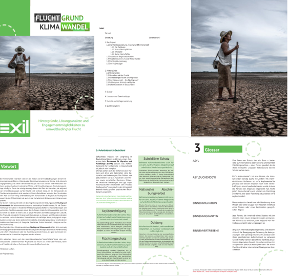 Eine projektbegleitende Webseite (www.fluchtgrundklimawandel.de) wurde aufgebaut und regelmäßig aktualisiert. Hier finden sich u. a. ein Pressespiegel, Hintergrundinformationen sowie didaktische Begleitmaterialien als Downloads in einer Mediathek.