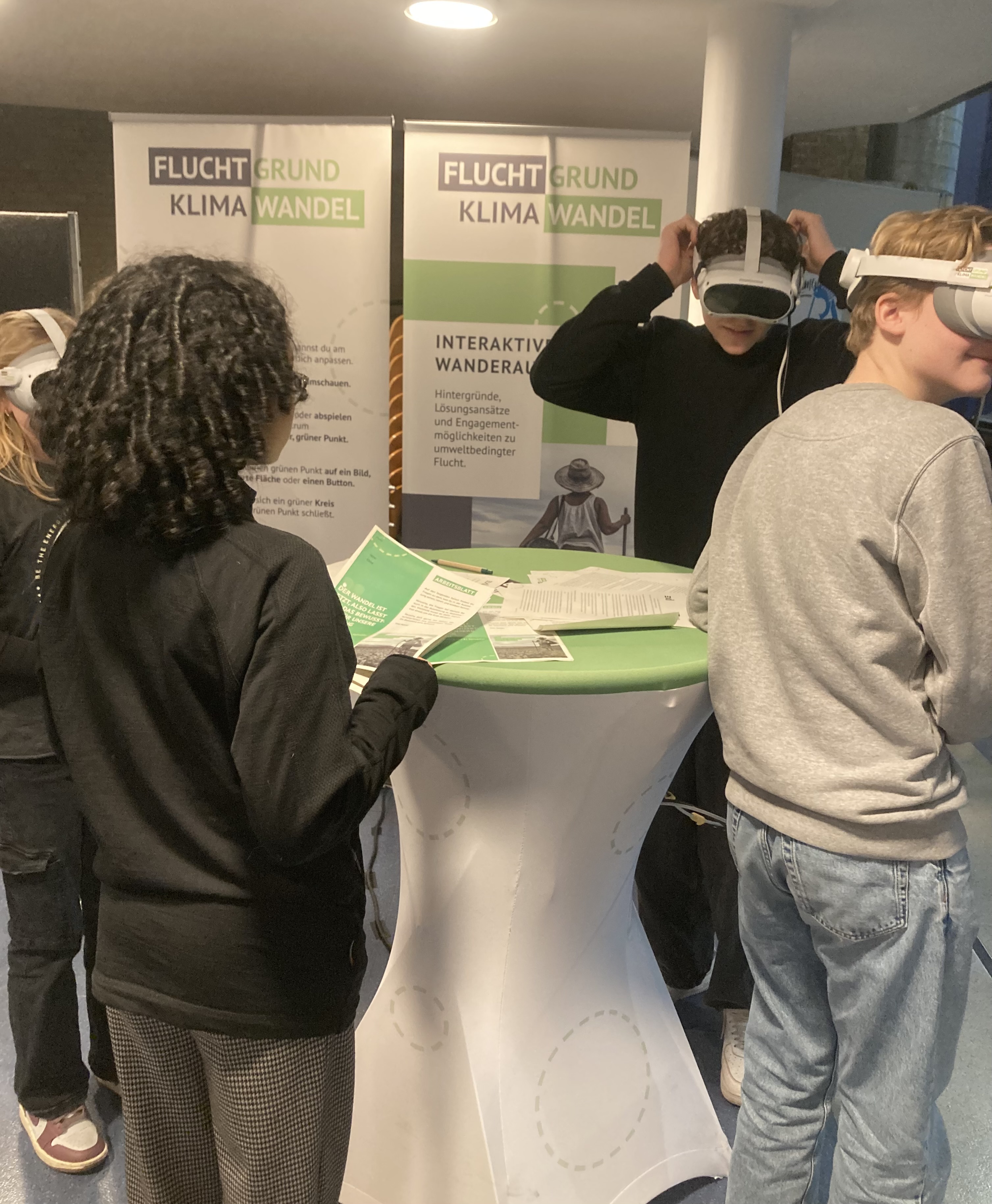Hier setzt das Projekt "Fluchtgrund Klimawandel" an. Es verfolgt das Ziel, die Zusammenhänge zwischen Klimawandel und Migration sichtbar zu machen, besonders für junge Menschen verständlich aufzubereiten und damit eine kritische Auseinandersetzung mit Fragen globaler Gerechtigkeit anzustoßen. Im Zentrum steht die gleichnamige interaktive Wanderausstellung, die bundesweit an Schulen und Bildungseinrichtungen gezeigt wird. Primäre Zielgruppe sind Jugendliche der siebten bis 13. Jahrgangsstufe, sekundär richtet sich das Angebot an die interessierte Öffentlichkeit. Die Ausstellung wird durch didaktisches Begleitmaterial, Workshops mit "Klimazeug*innen" und virtuelle Erlebnisangebote ergänzt.