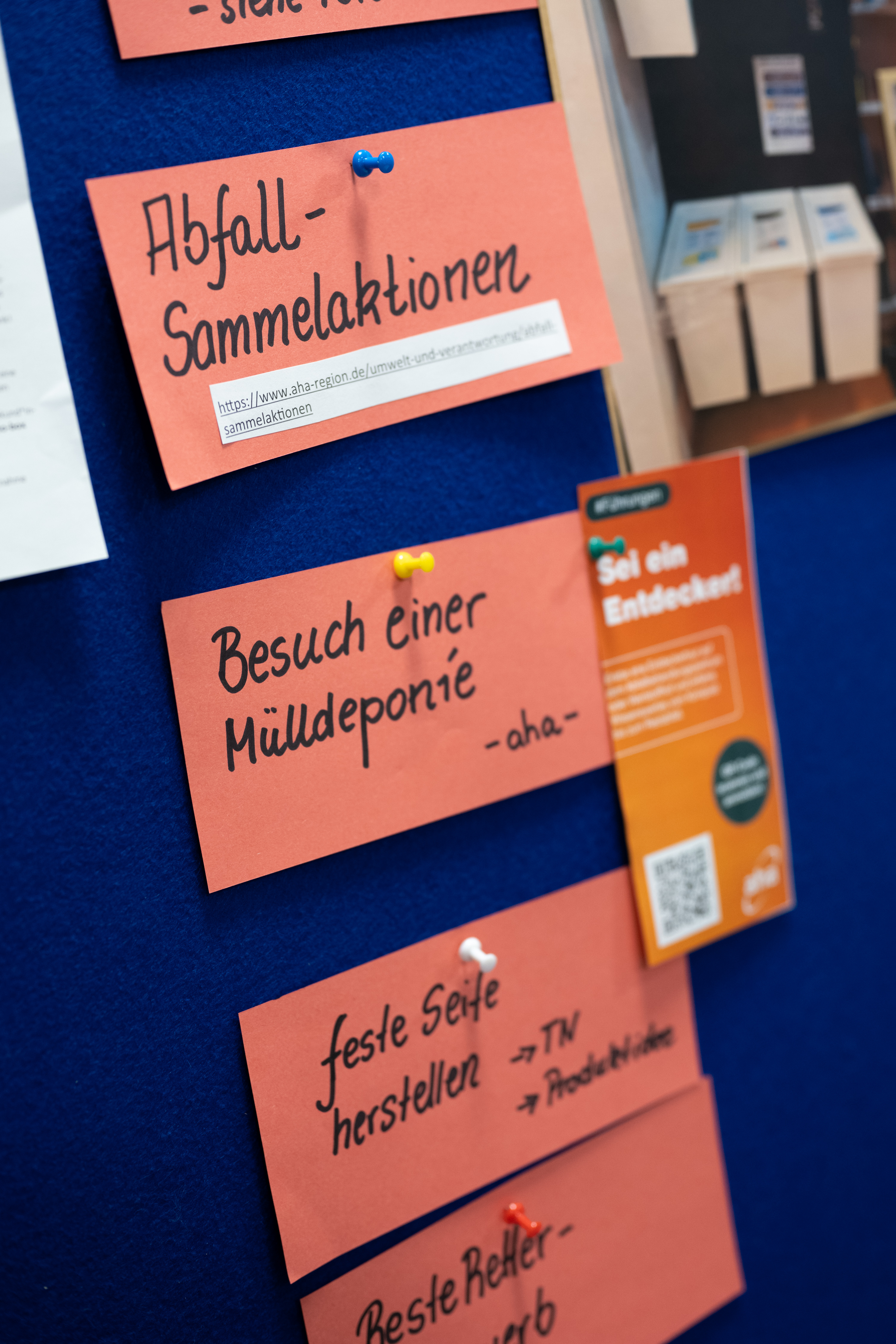 III: Erleben: Durch ganztägige Exkursionen lernten die Jugendlichen, pädagogischen Fachkräfte und Fachanleiter*innen außerschulische Lernorte oder regionale Umwelt- und Nachhaltigkeitsangebote kennen. Es wurde der Bio-Bauernhof der Eschenhof in Springe sowie das Energie- und Umweltzentrum am Deister und das Secondhand-Kaufhaus fairKauf besucht. So konnten ökologische Landwirtschaft, nachhaltiges Bauen und ressourcenschonendes Verhalten erlebbar gemacht werden.