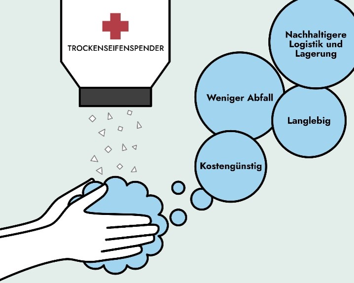 Wir möchten in diesem Projekt einen Spender entwickeln, der hygienisch unbedenklich und intuitiv anwendbar ist. Weiterhin möchten wir uns genauer anschauen welche Aspekte für die Ökobilanz von Seife entscheidend sind. Ist es die Plastikverpackung und das Transportvolumen oder sind die Inhaltsstoffe die entscheidenden Hebel?