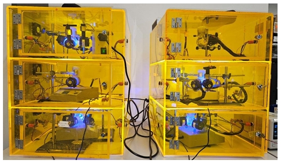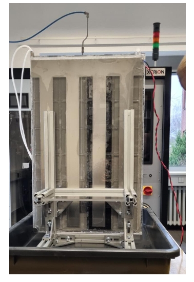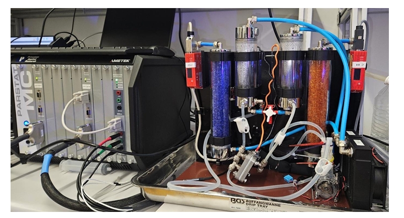 Hierzu wurden auch die Herstellungsprozesse entwickelt, die für eine Skalierung notwendig sind. Im Labormaßstab wurden modulare Anlagen mit verschiedenen Elektrolyse- und Photokatalysezellen aufgebaut, um Informationen für die Konstruktion eines Prototyps zu gewinnen. Der Prototyp steht noch am Anfang seiner Entwicklung.