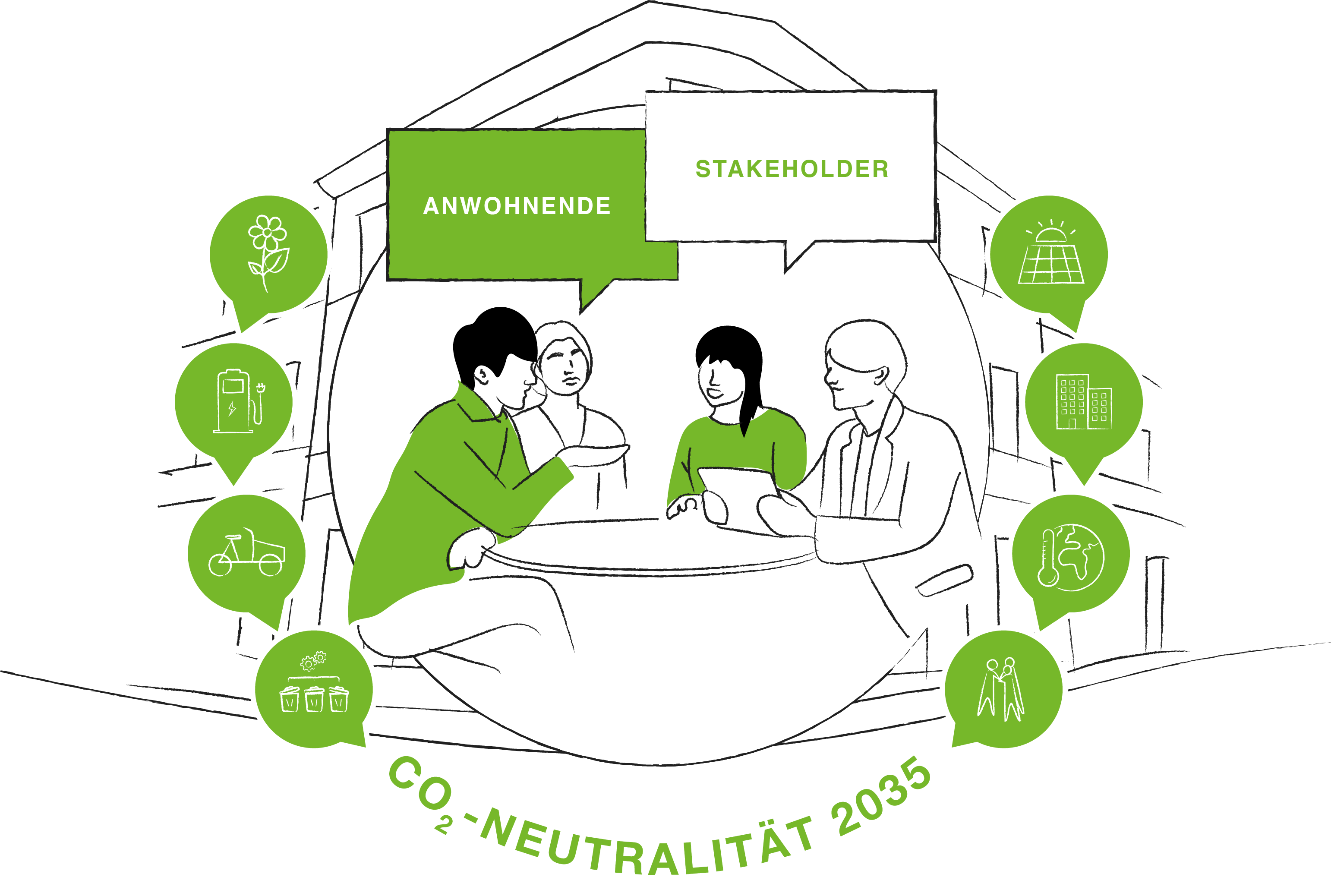 Ziel des Projekts war es daher, niedrigschwellige und übertragbare Werkzeuge für eine gemeinschaftlich getragene Nachhaltigkeitstransformation in Bestandsquartieren zu entwickeln, zu erproben und verfügbar zu machen. Im Fokus stand die Verbindung von Bottom-up-Engagement der Quartiersbewohner:innen mit Top-down-Strukturen durch kommunale und fachliche Akteure. Mit Hilfe von Themenwochen, Beteiligungsformaten und Fachworkshops wurden alltagsnahe Angebote zu den umweltrelevanten Themenfeldern Energieeinsparung, klimafreundliche Mobilität, Kreislaufwirtschaft und grüne Stadtgestaltung geschaffen.