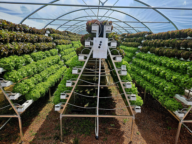 Seitenansicht des A-förmigen Vertical-Farming-Moduls des Startups Pflanzentheke GmbH