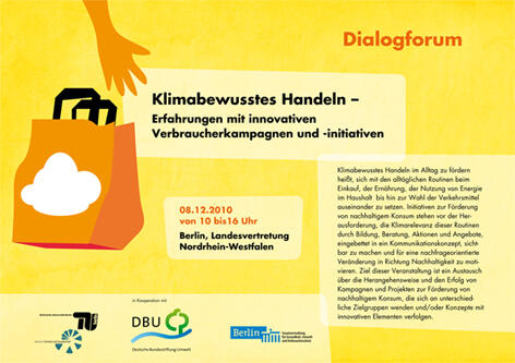 Klimabewusstes Handeln im Alltag zu fördern heißt, sich mit den alltäglichen Routinen beim Einkauf, der Ernährung, der Nutzung von Energie im Haushalt bis hin zur Wahl der Verkehrsmittel auseinander zu setzen. Initiativen zur Förderung von nachhaltigem Konsum stehen vor der Herausforderung, die Klimarelevanz dieser Routinen durch Bildung, Beratung, Aktionen und Angebote, eingebettet in ein Kommunikationskonzept, sichtbar zu machen und für eine nachfrageorientierte Veränderung in Richtung Nachhaltigkeit zu motivieren.